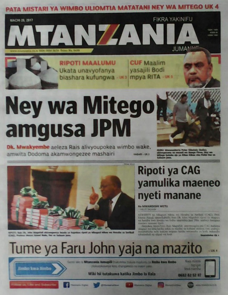 Habari zilizopo katika magazeti ya leo jumapili ya tarehe 30,october 2016.